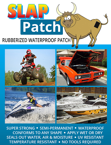 Slap Patch is a super strong, rubberized, semi-permanent and waterproof patch that can bond, seal and repair virtually everything. Very easy to use, just slap it on and get back to your fun! Perfect repair patch to carry for those weekend excursions.