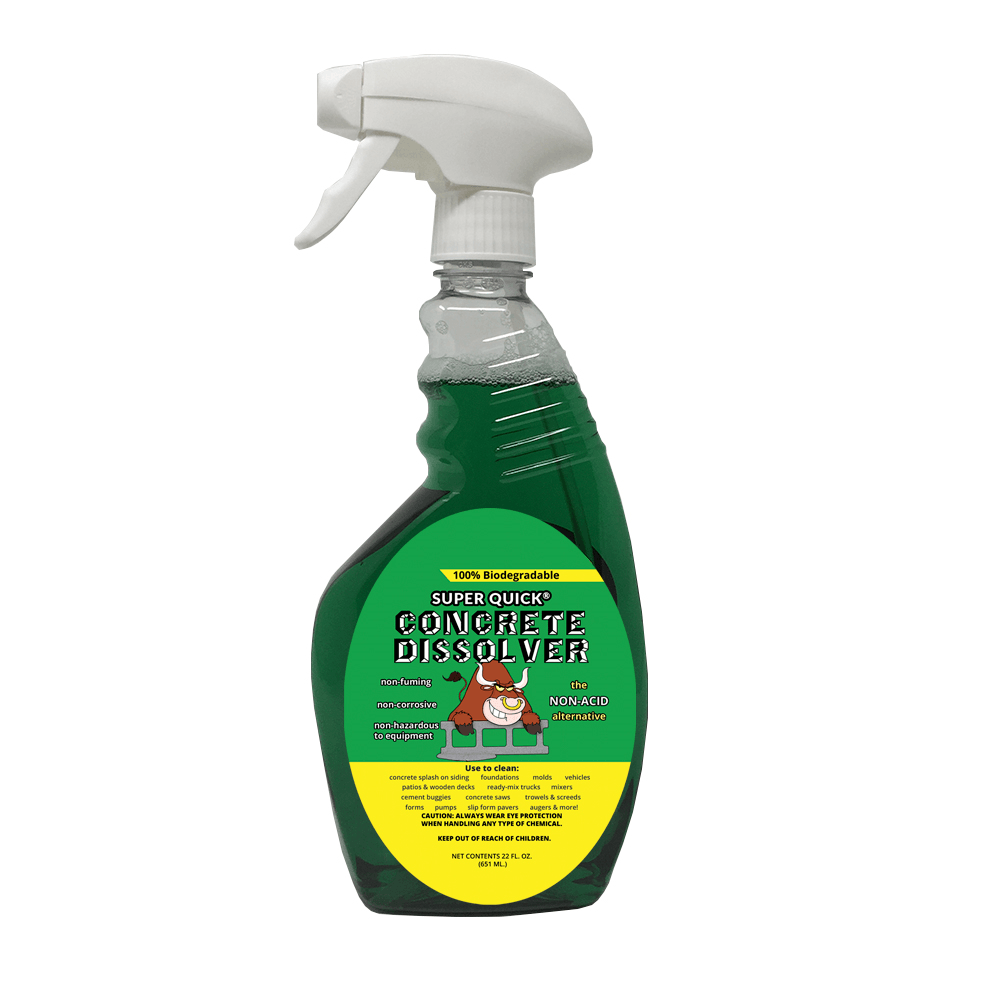 Super Quick Concrete Dissolver is a liquid compound specifically formulated to dissolve built up cement on tools and equipment associated with the concrete ready mix industry.